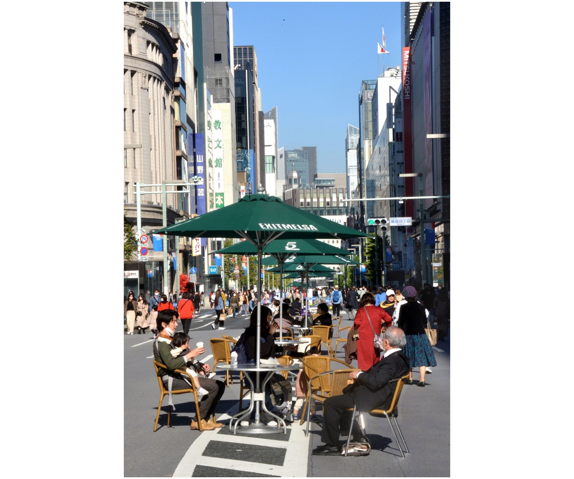 *View of Ginza cityscape from the GINZA SIX open rooftop garden.